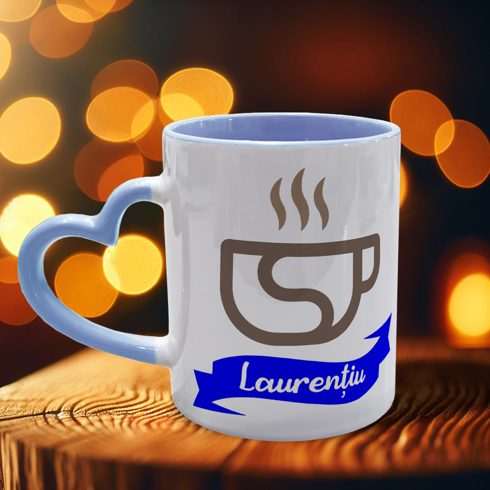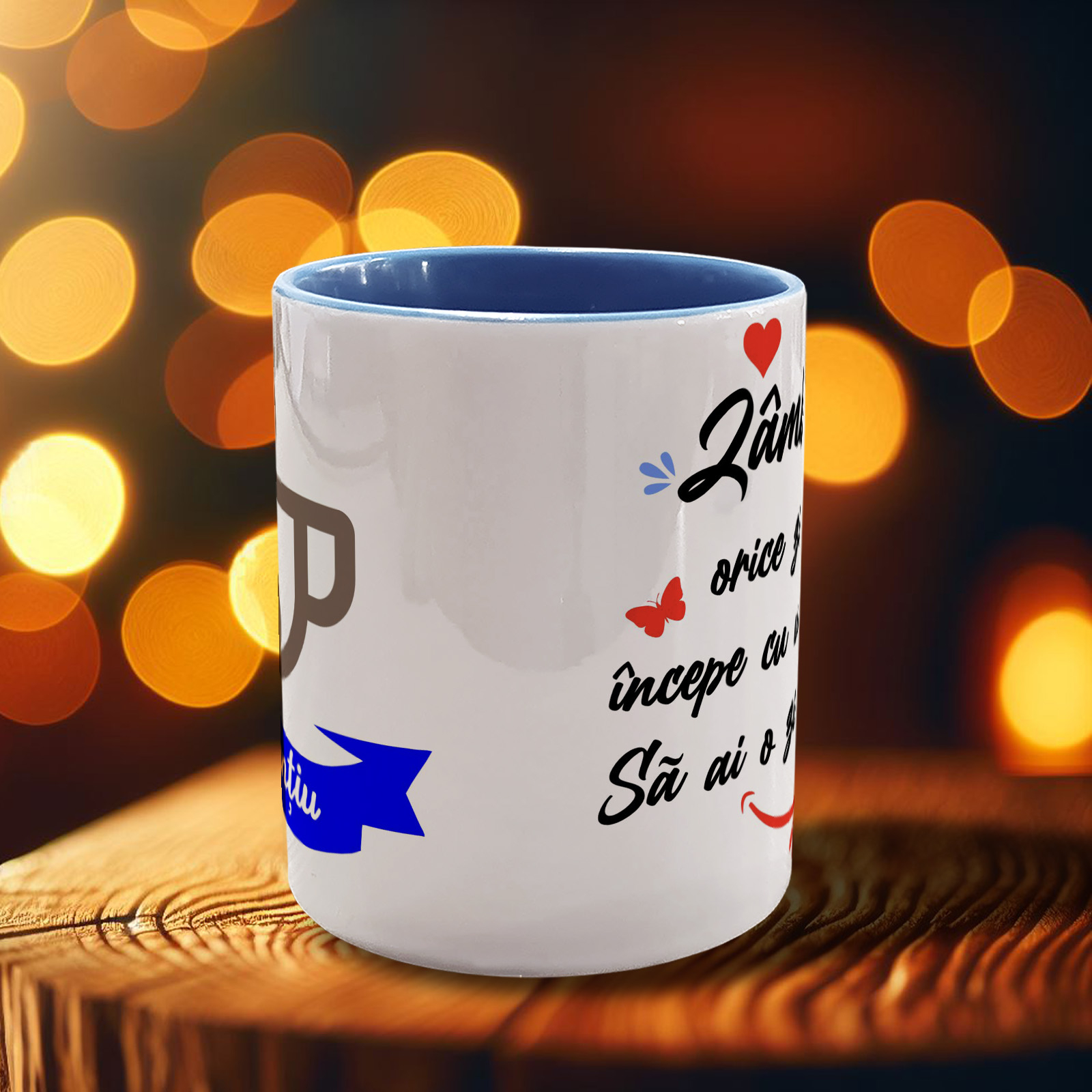 Cană se poate personaliza cu o numele persoanei care primește cadoul  si mesajul Personalizare