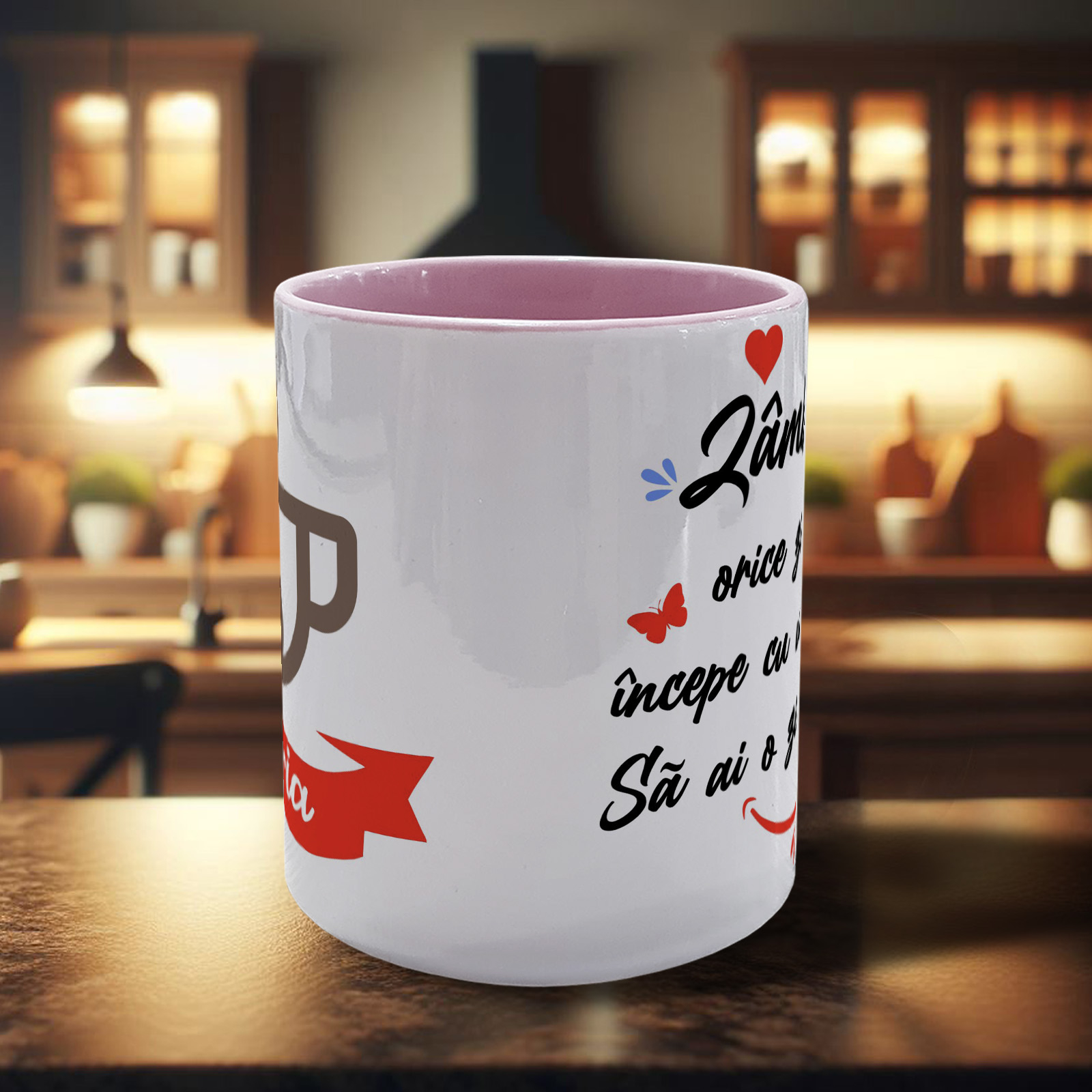 Transformă fiecare moment de relaxare într-o experiență memorabilă cu această cană personalizată. Personalizarea cu numele persoanei care primește cadoul și mesajul "Zâmbește... orice zi bună începe cu un zâmbet... Să ai o zi minunată..." fac această cană perfectă pentru a adăuga un strop de personalitate fiecărei zile. Fabricată din ceramică de înaltă calitate, cana este durabilă și rezistentă, ideală pentru cafea, ceai sau orice băutură preferată. Cu o capacitate de 330 ml, (250 ml și 180 ml disponibil doar la cănile albe cu toartă simplă) este suficient de mare pentru a satisface orice dorință de hidratare.
