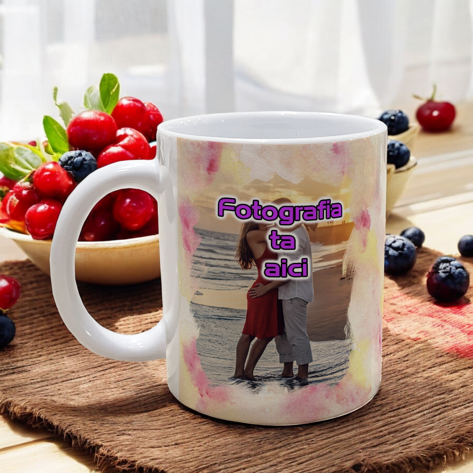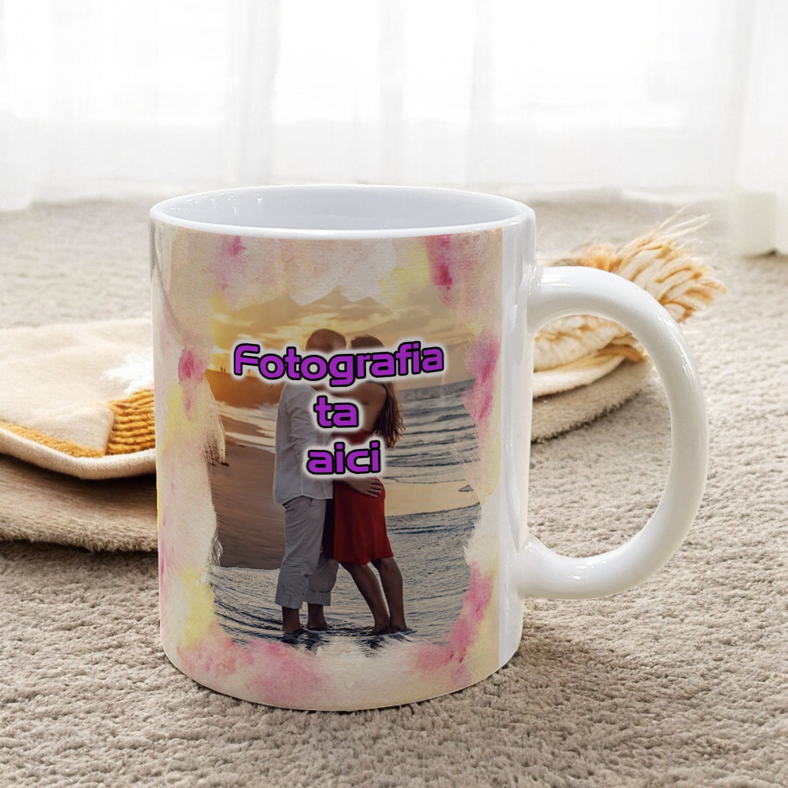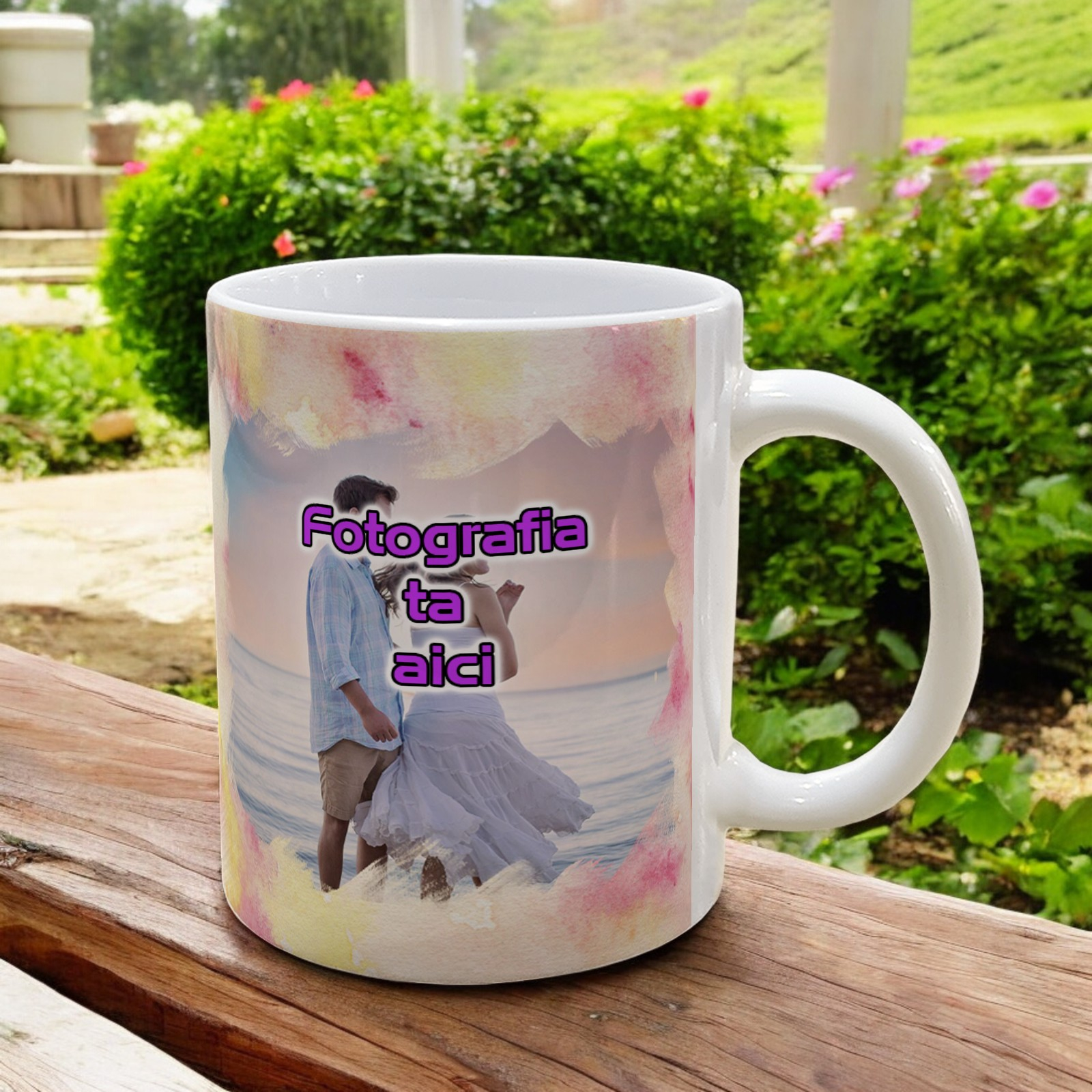 Transformă fiecare moment de relaxare într-o experiență memorabilă cu această cană personalizată. Fundalul colorat cu efect acuarelă și posibilitatea de a imprima una sau 2 fotografii pe suprafața cănii fac această cană perfectă pentru a adăuga un strop de personalitate fiecărei zile. Fabricată din ceramică de înaltă calitate, cana este durabilă și rezistentă, ideală pentru cafea, ceai sau orice băutură preferată.