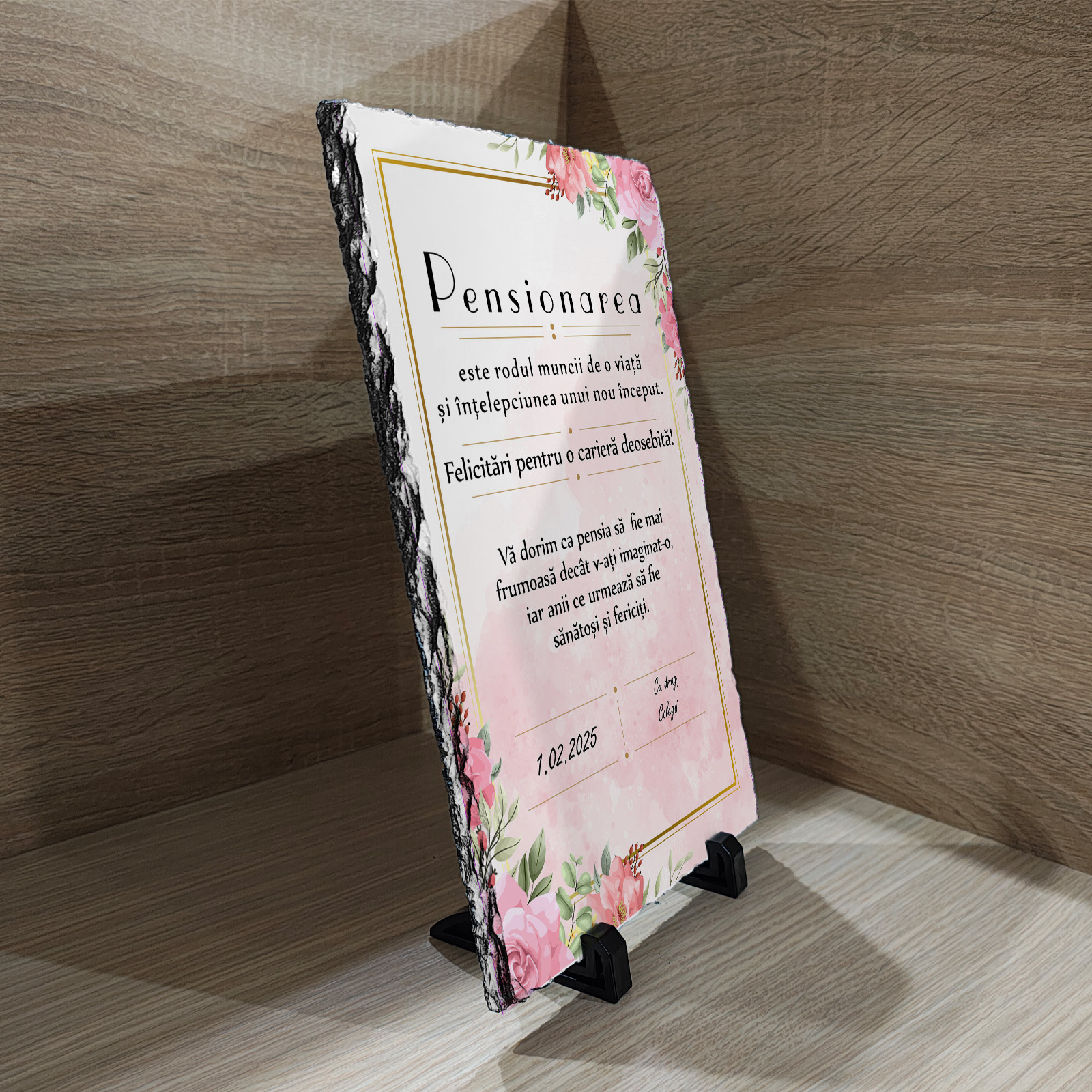 Piatra de ardezie personalizată – Mesaj pentru pensionară