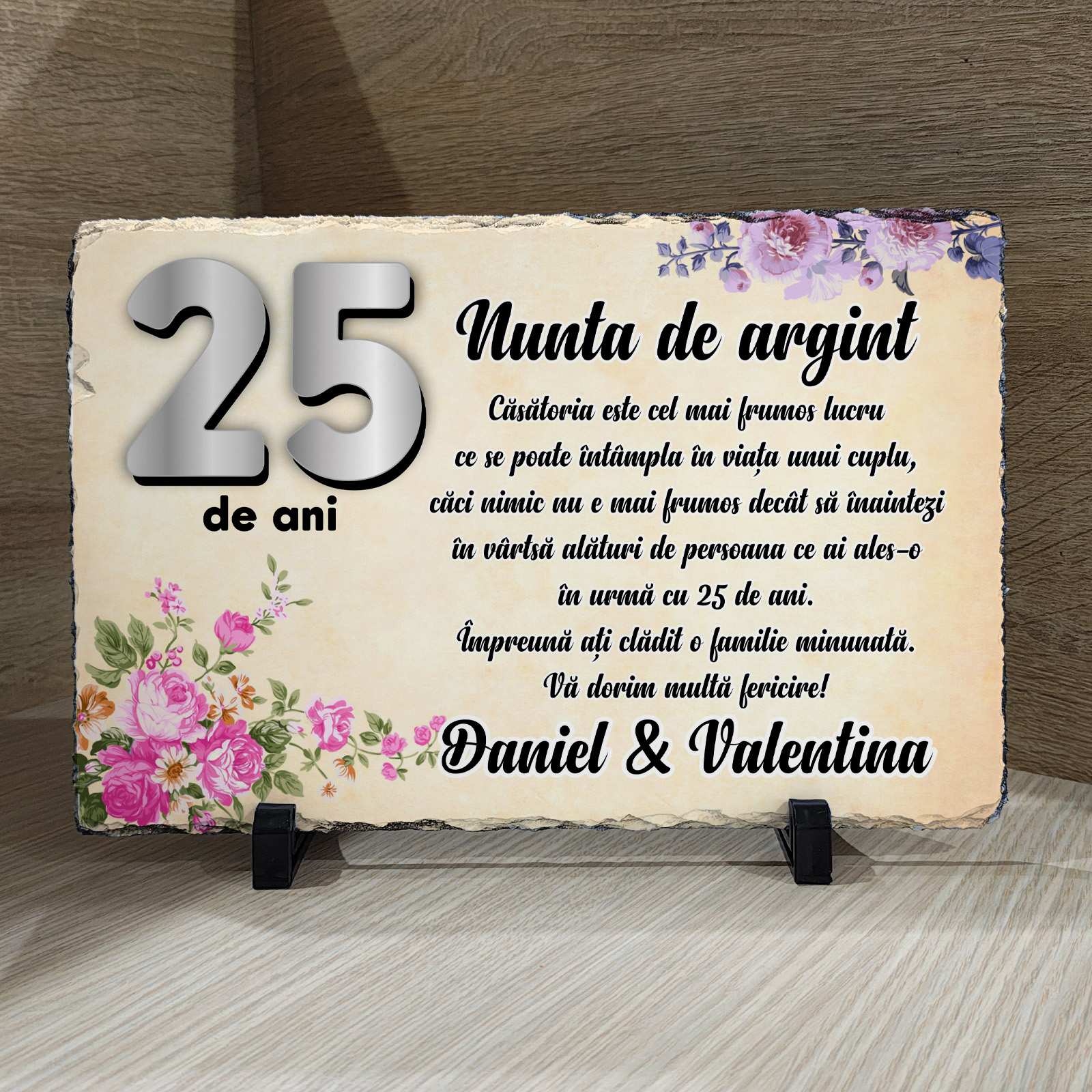 🎉 Placă de Ardezie Personalizată – Nunta de Argint 🎉