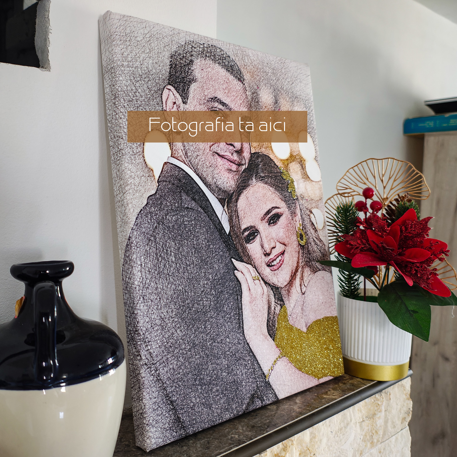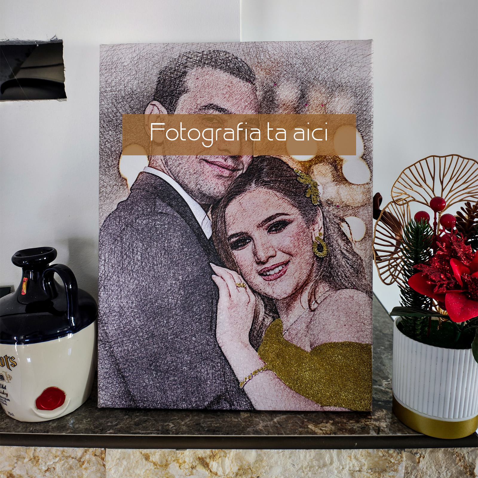 Acest tablou canvas este o fuziune spectaculoasă între tehnologia digitală și măiestria artistică tradițională. Imaginea a fost creată cu grijă pe o tabletă grafică, unde fiecare detaliu a fost desenat cu precizie și pasiune. După imprimarea pe pânză de înaltă calitate, lucrarea a fost transformată într-o piesă unică prin aplicarea manuală a sclipiciului, pensulă cu pensulă, adăugând textură, profunzime și un joc fascinant de lumini.